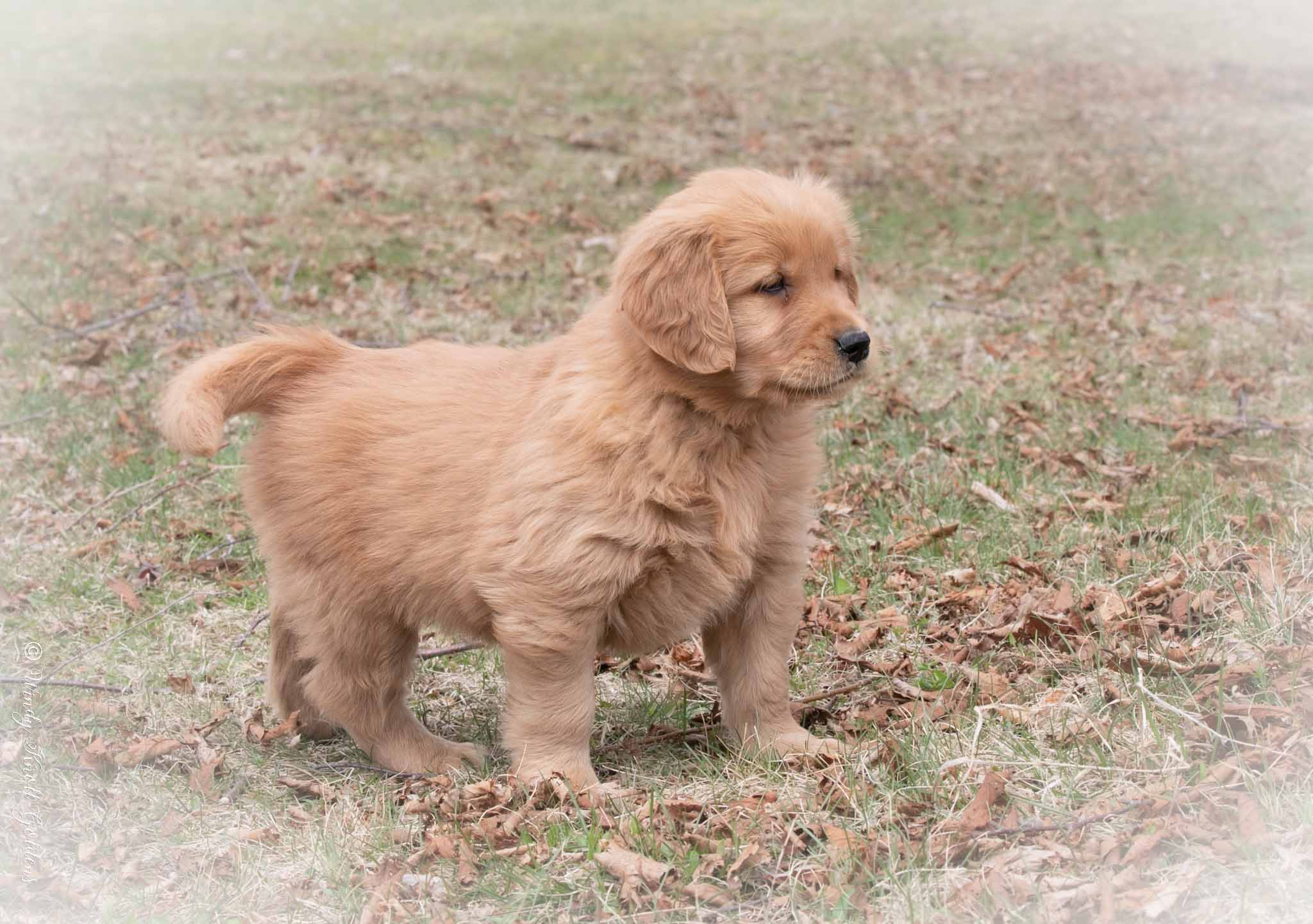 Rosie’s the type to warmly greet anyone who stops by—she doesn’t meet a stranger! Raised around kids, adults, and other dogs of all ages, she’s wonderfully social. Her coat boasts lovely dark red highlights that will deepen as she grows, adding to her charm. We’re so happy to have her as part of the family here at Windy Knoll Goldens!