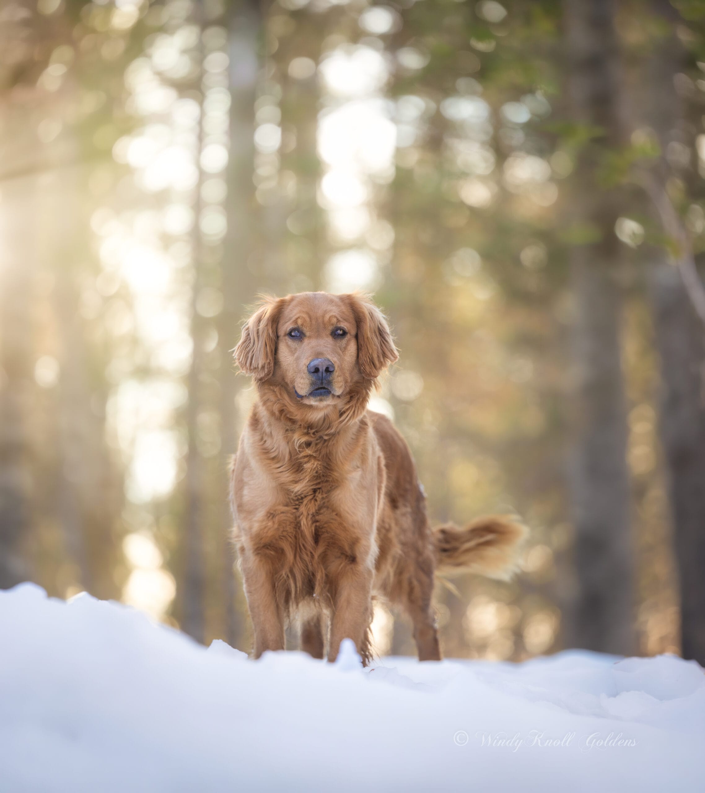 Clover is one of 6 golden sisters we have had that include Clara, Patsy and Susie. Clover is a quiet, regal, friendly dark red American field golden retriever. She is medium energy with a medium build. As a mother, she is one of our best! She is great with children and the other dogs sometimes even becoming a surrogate mother.